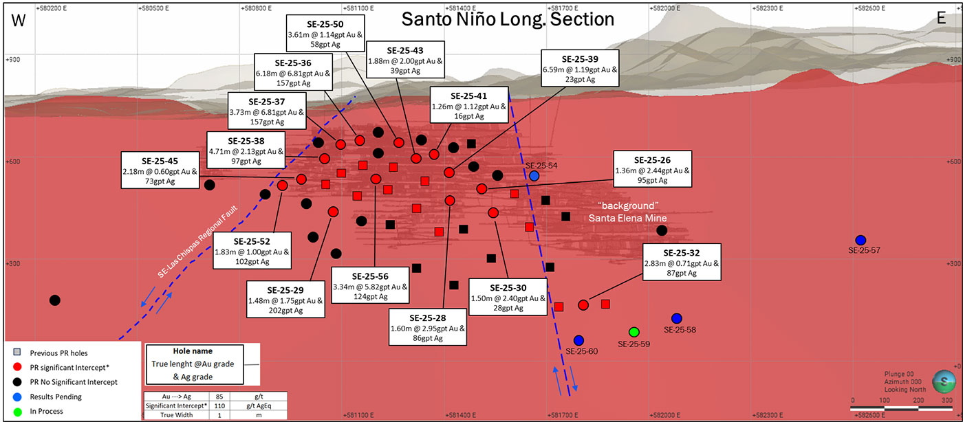 A summary of significant high-grade assay results from exploration drilling completed at Santa Elena during the second half of 2025 are provided in Table 2, Table 3 and Table 4 below.