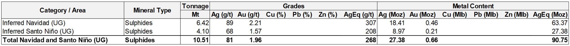 Table 4: Santa Elena - Navidad and Santo Niño Inferred Mineral Resource Estimates with an Effective Date of December 31, 2025